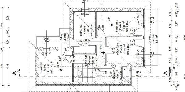 helyet, az emeleten három szoba, fürdőszoba, és egy 15 nm-es terasz.Műszaki