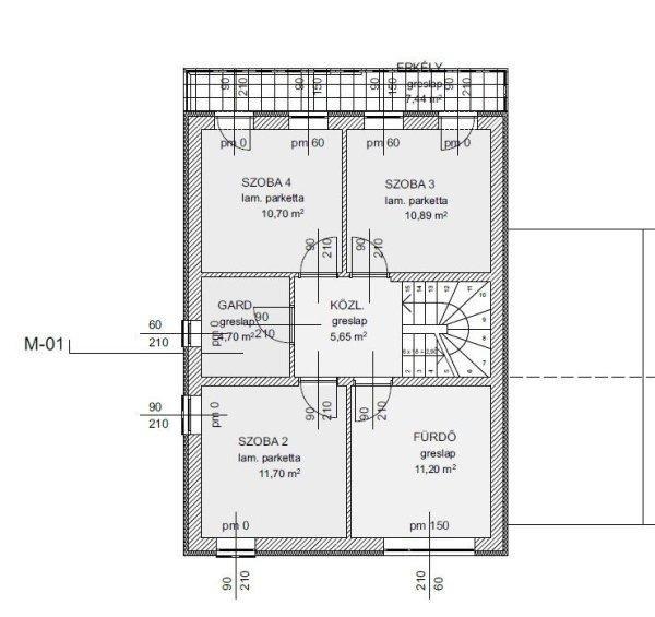 két fürdőszoba, gardróbbal épült meg. A fűtést hőszivattyúval és padlófűtéssel