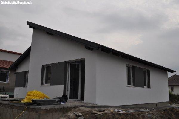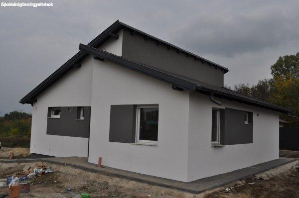 tégla építésű + 12 cm dryvit szigeteléssel, hőszigetelt nyílászárókkal,
