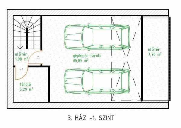 legalul található a garázsszint és a tároló-gépészeti helyiség, nappali szinten