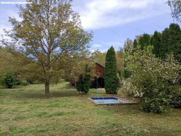 medence, mely felújításra vár, csempéi megvannak, valamint egy 70 nm-es faház,