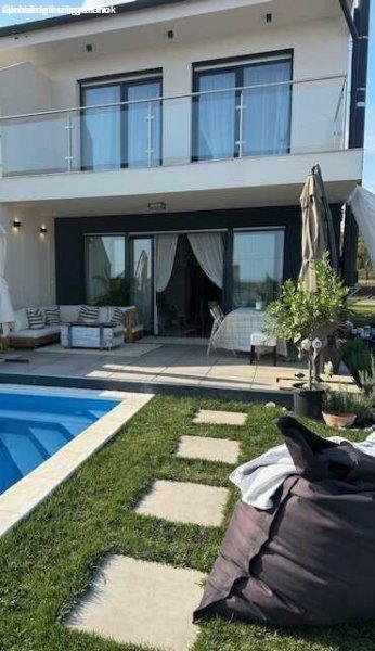Modern, fiatalos, medencés, BALATONI panorámás ikerházi laká