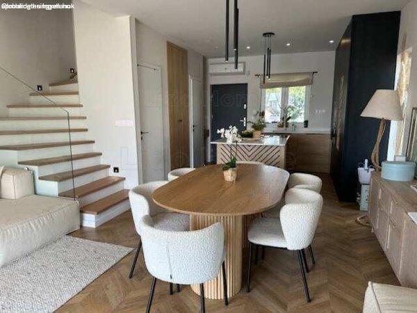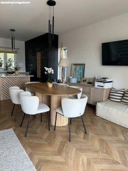 Családi házak rovaton belül a(z) "Modern, fiatalos, medencés, BALATONI panorámás ikerházi laká" című hirdetést látja. (fent)