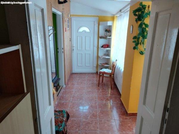 szoba, konyha - étkezővel, fürdőszoba WC-vel és közlekedő található. Két
