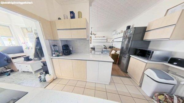VADONATÚJ BÚTORRAL FELSZERELT KONYHA. A konyha hátul egybe van nyitva a