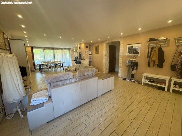 bővített, teljesen felújított családi házat, dupla garázzsal 1596 nm-es telken.