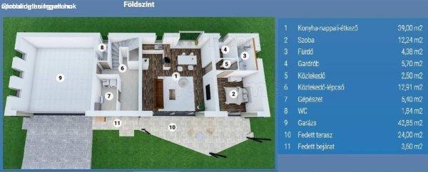gardróbbal, külön WC-vel, teraszokkal, dupla garázzsal, kényelmes életteret