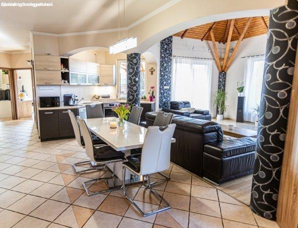 méretű családi ebédlőasztal is kényelmesen elfér.Az otthon egyik ékessége a