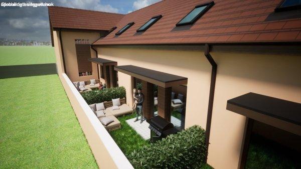 műanyag nyílászárók- 25 m2-es amerikai konyhás nappali- 2 wc- 16 m2-es terasz-