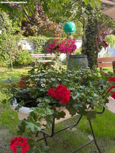 kert, automata öntözőrendszer, ciszterna, kút, valamint négyállásos, fedett
