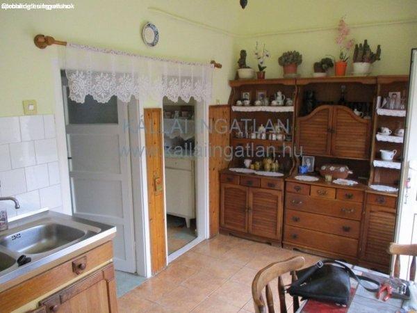 2,5 szobás, fanyílászárós, gáz-konvektoros, három cserépkályhával rendelkező