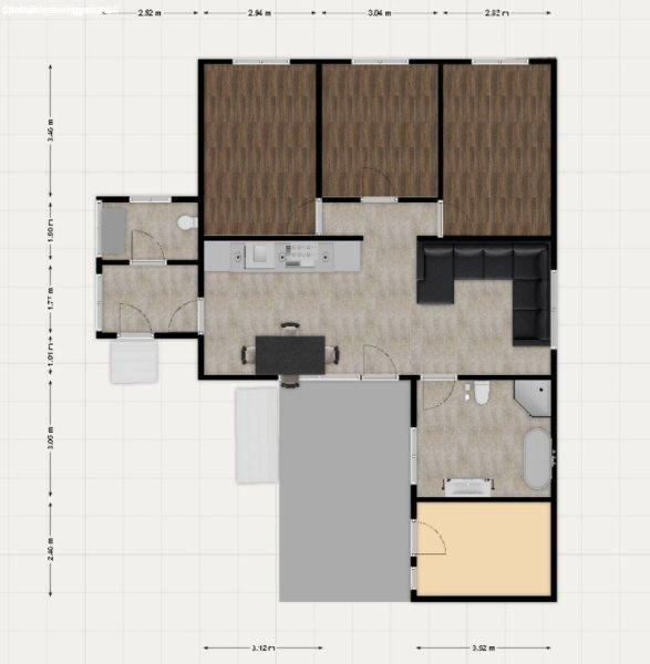 födémes, stukatoros.A szobákban hajópadló párnafákon, a többi helyiség