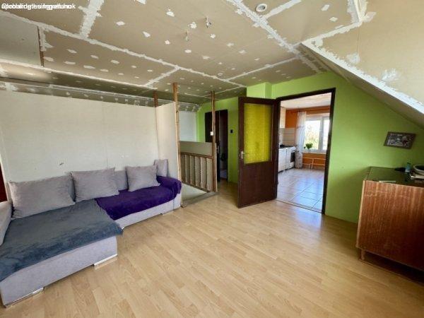 garázsba, kazánházba.Felső szint:- Részben felújítva- Új nyílászárók redőnnyel