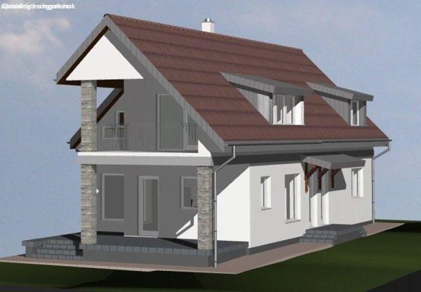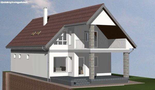 építési telken szerkezetkész állapotig épülő ház (földszint + tetőtér)