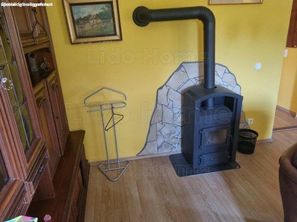 cserépkályhával és egy hangulatos kandallóval részben megoldott.- A ház