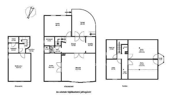 hálónál erkély kapcsolattal. A 29 m2-es pinceszinten található a fűtőhelyiség