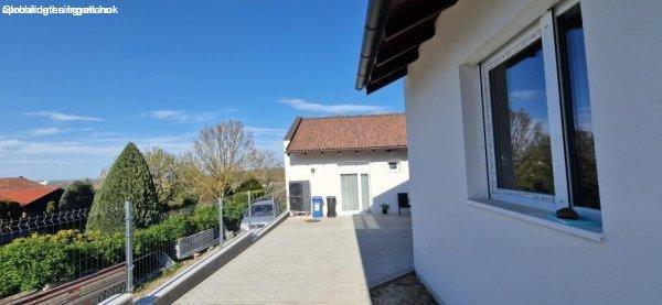 délre néző 25 m2-es terasszal, 2 db gépkocsibeállóval, 387,6 m2-es saját