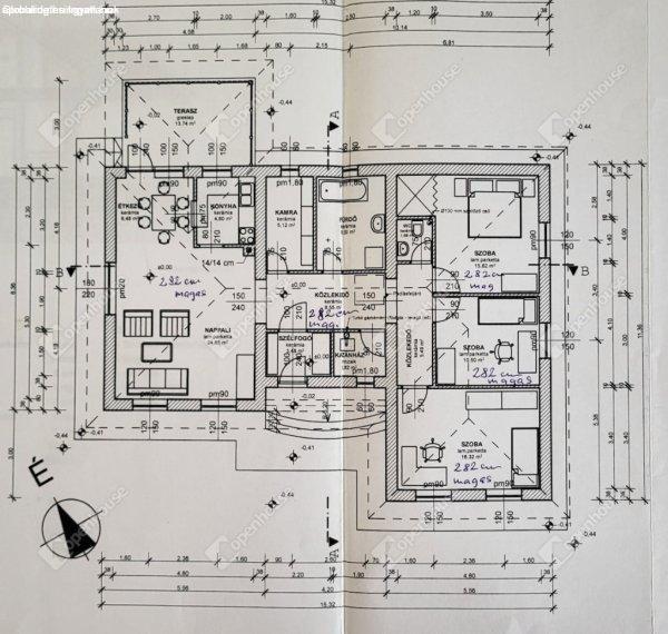 szép kilátással - nagy nappali, étkező, konyha, három szoba, fürdő, wc, kamra,
