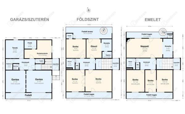 épült téglából, 213 m2 hasznos élettér plusz a lépcsőház, loggiák és terasz, 2