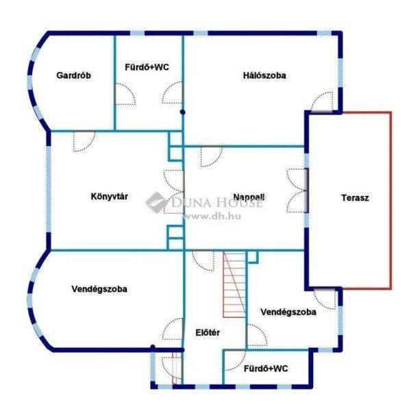 szinten 2 db vendégszoba van külön fürdővel és wc-vel. Még egy emelettel fentebb