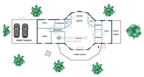 m2-es fedett beállóval és 17 m2-es részben fedett terasszal.A kiváló állapotú