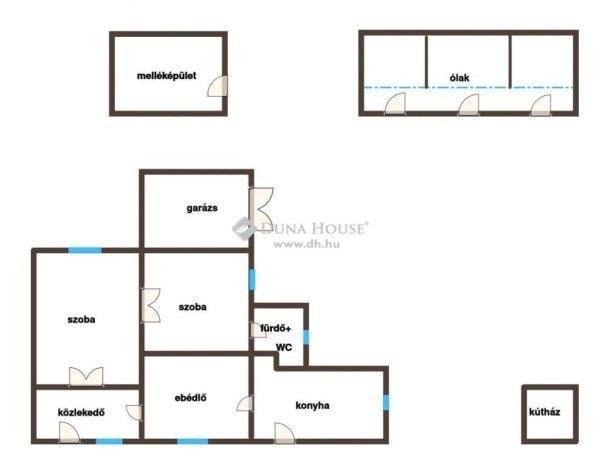 adatai:- 2 szoba, konyha, étkező, közlekedő, fürdő+WC- közművek: villany, víz,