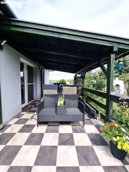 a lakáshoz valamint 1 garázs is. Az udvar rendezett, öntözése kútról megoldott.