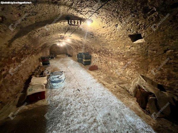 egy 634 m2-es telken!A pince több mint 100 m2 alapterületű, 24,5 m hosszú.A