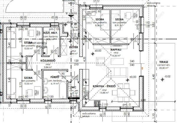 terasszal, + kocsibeállóval. Nappali-konyha-étkező mellett négy hálószoba kerül