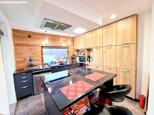 jelenleg található egy világos, gépesített nagy konyha főzőszigettel - étkező