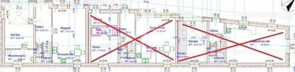 5,85 nm,- konyha + étkező 10,60 nm,- garázs 19,22 nm.Emelet:- szoba 13,25 nm,-