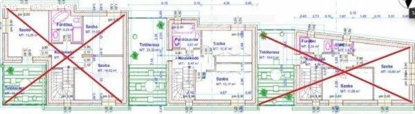 konyha 6,95 nm,- előszoba 6,96 nm,- WC 1,44 nm,- lépcső 2,03 nm,- nappali +