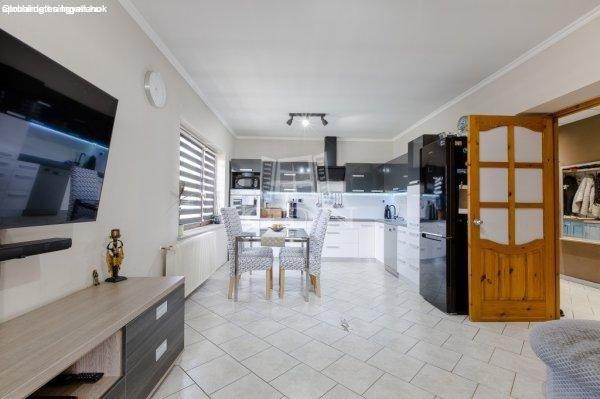 nm-es telken egy családi házat, melyben két külön bejáratú lakás található.Az