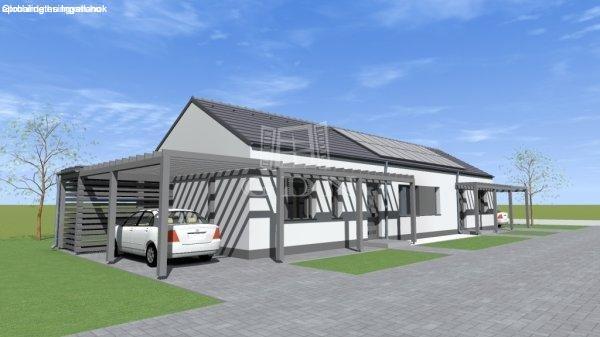 telek területtel ,terasszal, fedett gépjármű beállóval, tárolóval.AA+ -os