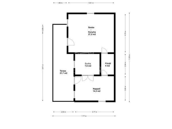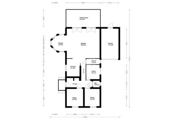lakóterületű, klímákkal és fűtőpanelekkel fűthető, szintén 21 m2-es fedett