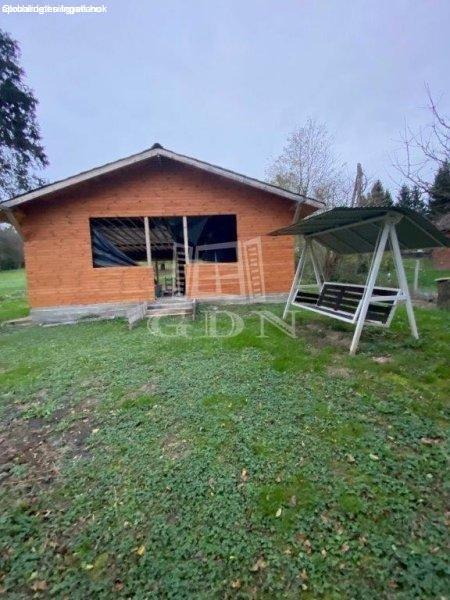 kút, könnyűszerkezetes garázs, tároló helyiség és egy 64 m2-es fából épített