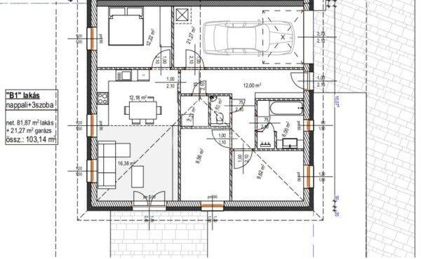 értékhatárig.Garázskapu szekcionált, motoros kivitelben készül.Az épületre 10 cm