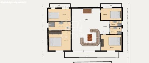 tágas nappalin, konyhán és a további helyiségeken.Tégla épületet cserép tető