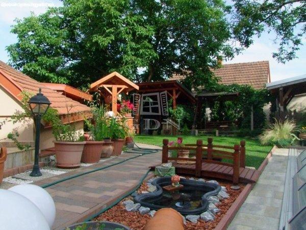 garázs lejárata fűthető.A gondozott parkosított udvaron fedett gépkocsibeálló,