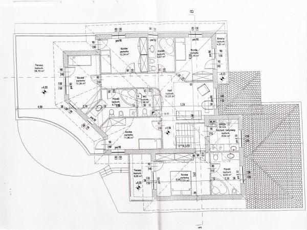 szobához terasz is tartozik + 2 db fürdőszoba.A padlástérben vendégszoba