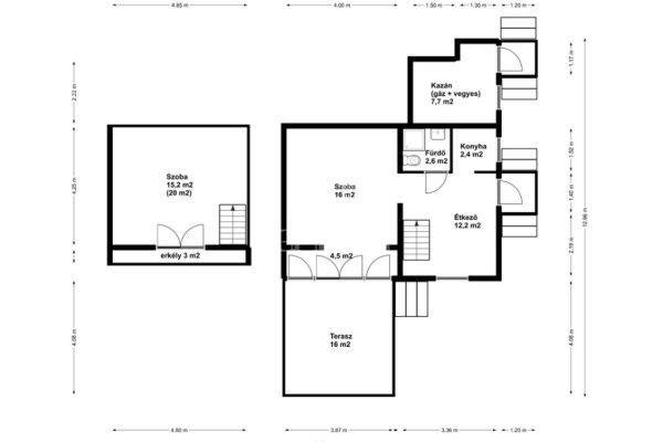 alapterületű, szoba, konyha, fürdőszoba kialakításúVendégház 2: