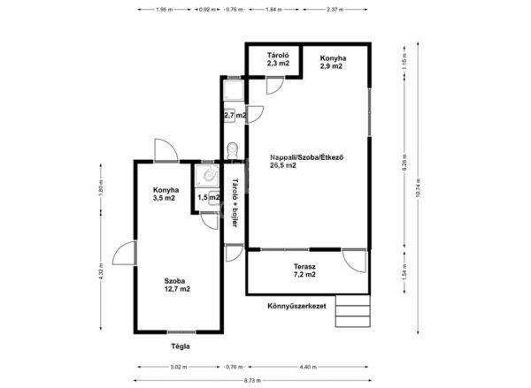 hőszigetelt, újszerű állapotú, 35 m2 lakótér + 7 m2 terasz, klímával