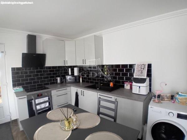 és fél szobával, gardróbbal, modern, felújított fürdőszobával és konyhával. Nagy
