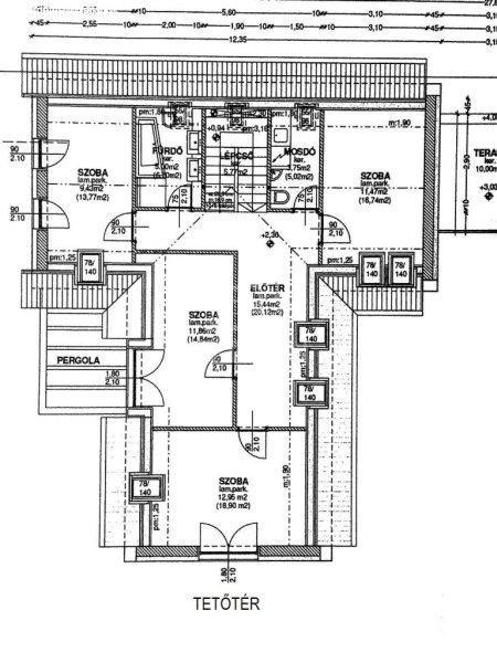 nm), fürdőszoba (4,95), vendég WC, gardrób, előszoba + garázs (27,9 nm) + terasz