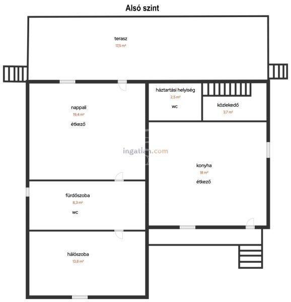 kiléphetünk.A második lakrészbe, egy 17.5m2-es teraszról lépünk be, ahol egy