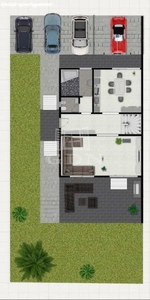 mosókonyha,- 3,2 m˛ zuhanyzós fürdő + WC,- 3,56 m˛ lépcső + tároló,Földszint: