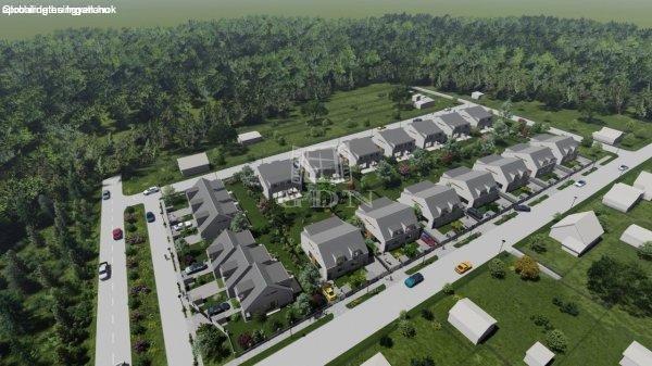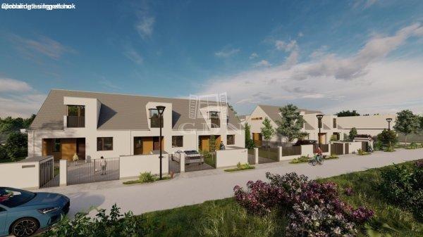 Mogyoród frekventált részén épülő modern, letisztult új 3 lakásos sorház középső