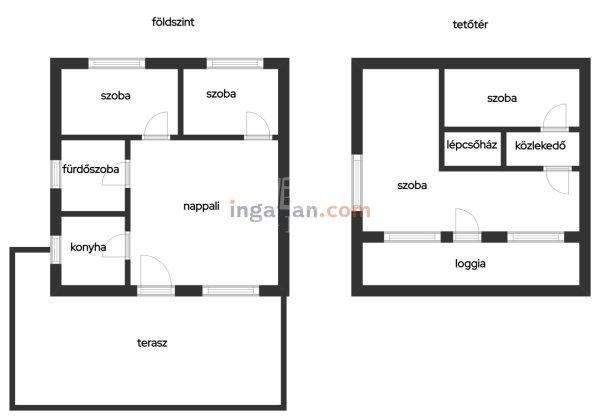 helyiségei:-földszinten: nappali/étkező, konyha, 2 félszoba, fürdőszoba wc-vel,