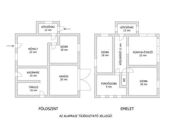 földszinten egy szoba 18 nm-es szoba, 22 nm-es műhely, és 20 nm-es garázs is