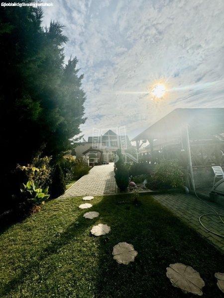négyzetméteres parkosított kertbe, ahol épített medence valamint kiépített
